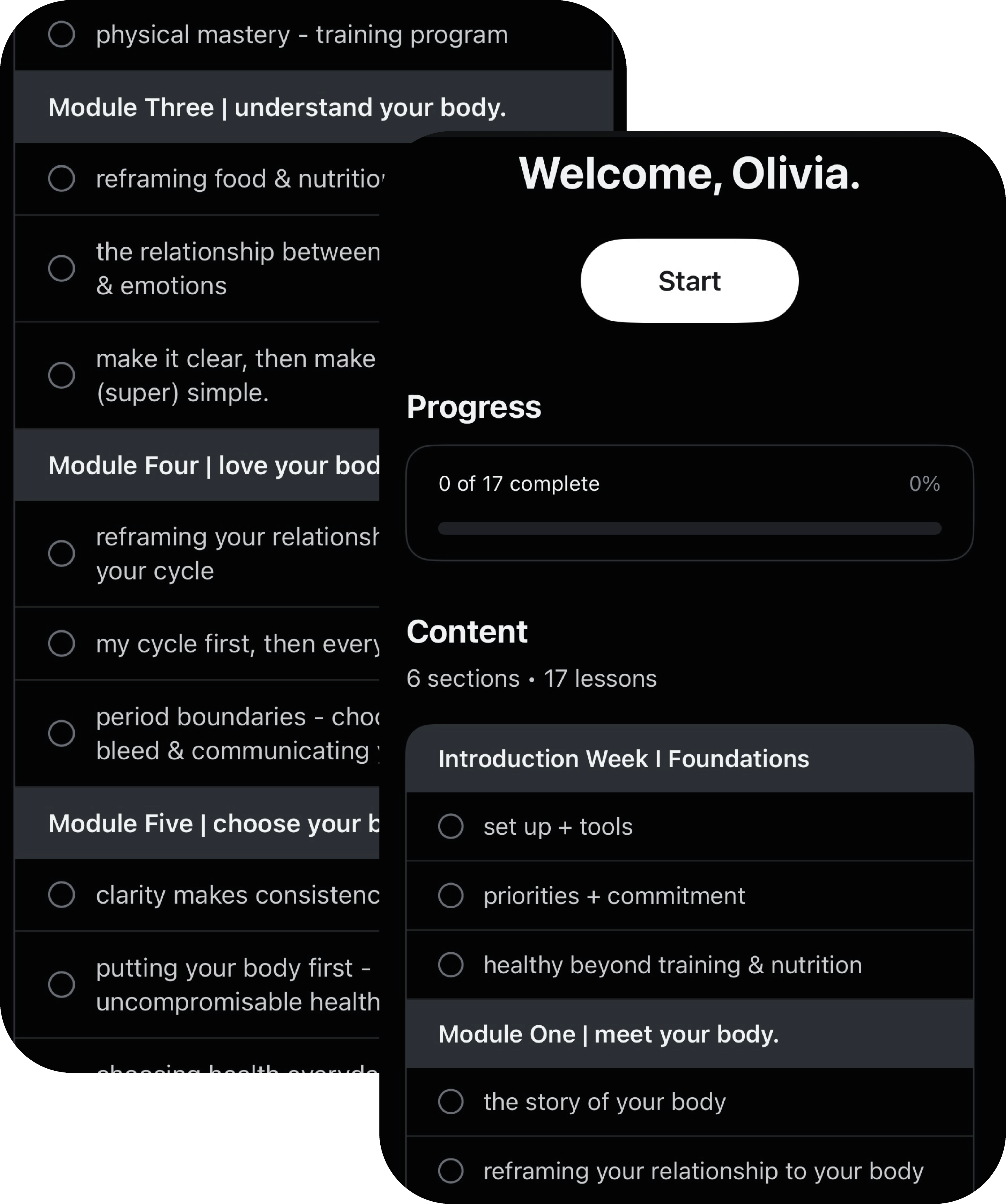 When you stop chasing the perfect body, you make space for real health. Choosing Health shows you how to shift your focus from control and criticism to curiosity and care — that's when your body will intuitively lead you to the shape, strength, and vitality that are right for the both of you.